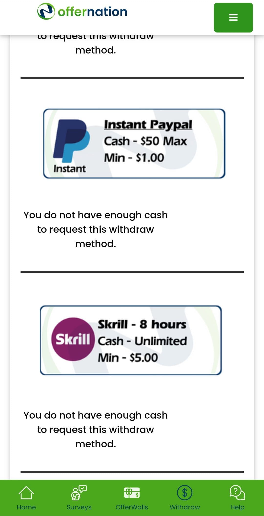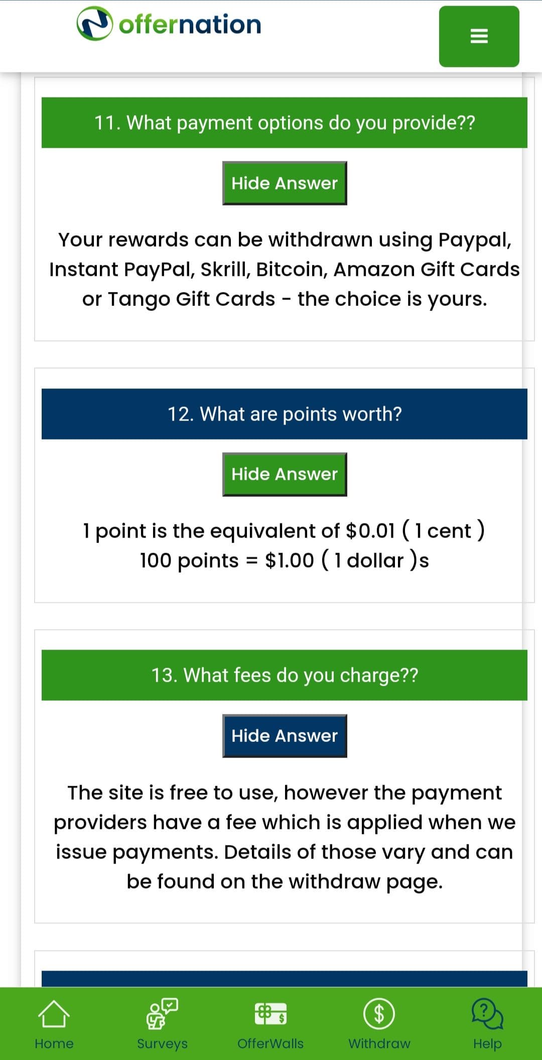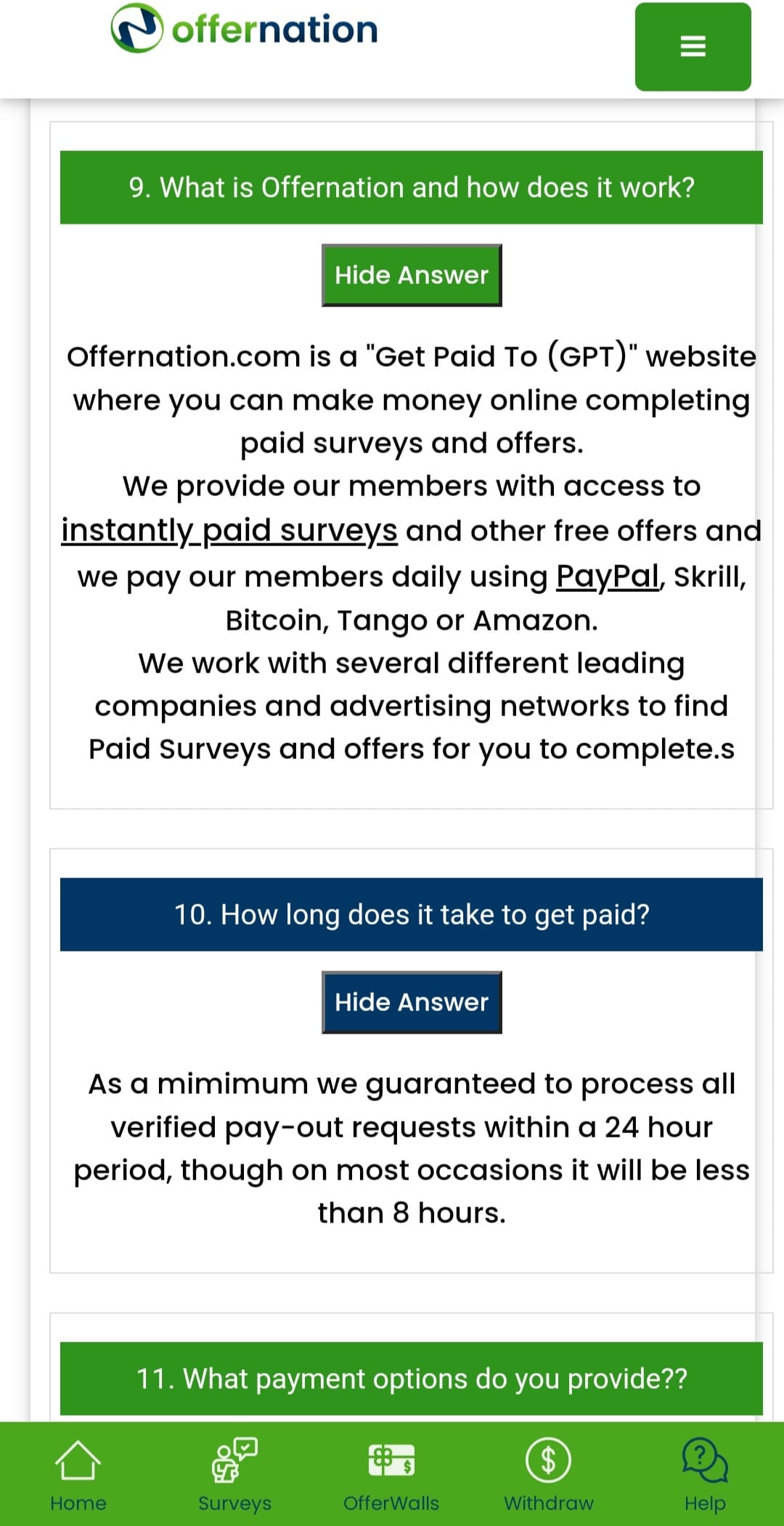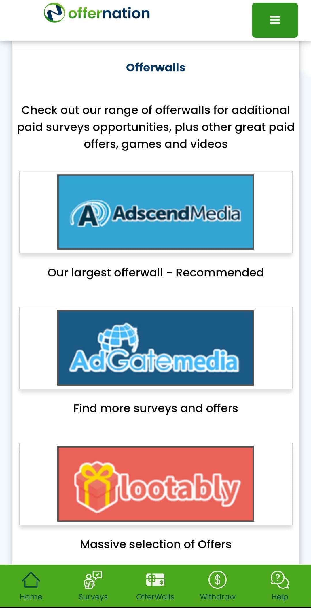 Offernation.com is a reputable and reliable platform that offers paid surveys etc and you can earn extra cash from the comfort of your home. With a vast selection of surveys from various industries and interests, you can easily supplement your income and fulfill your financial goals without any hassle. With a user-friendly interface and seamless navigation, you can focus on completing paid surveys and maximize your earnings without being bogged down by technical difficulties. With multiple payment options like PayPal, Skrill, or Amazon gift cards, you can withdraw your earnings quickly and enjoy the fruits of your labor without any delays. Sign up today and embark on a fulfilling journey towards financial independence and success.