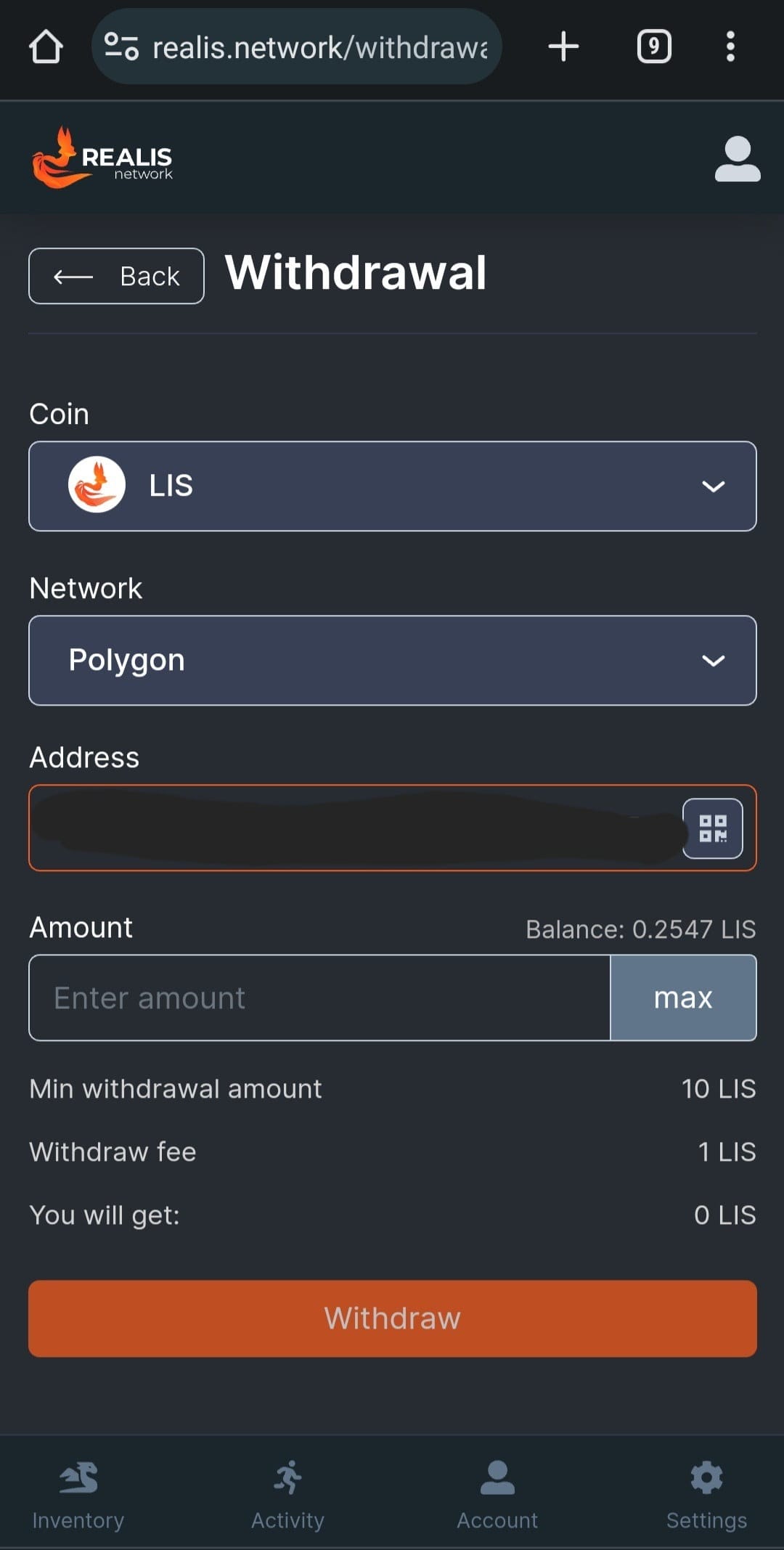 Transfer your LIS to your Realis Wallet. From Realis you can transfer, Swap or Withdraw your LIS to using either the Polygon or Near networks.